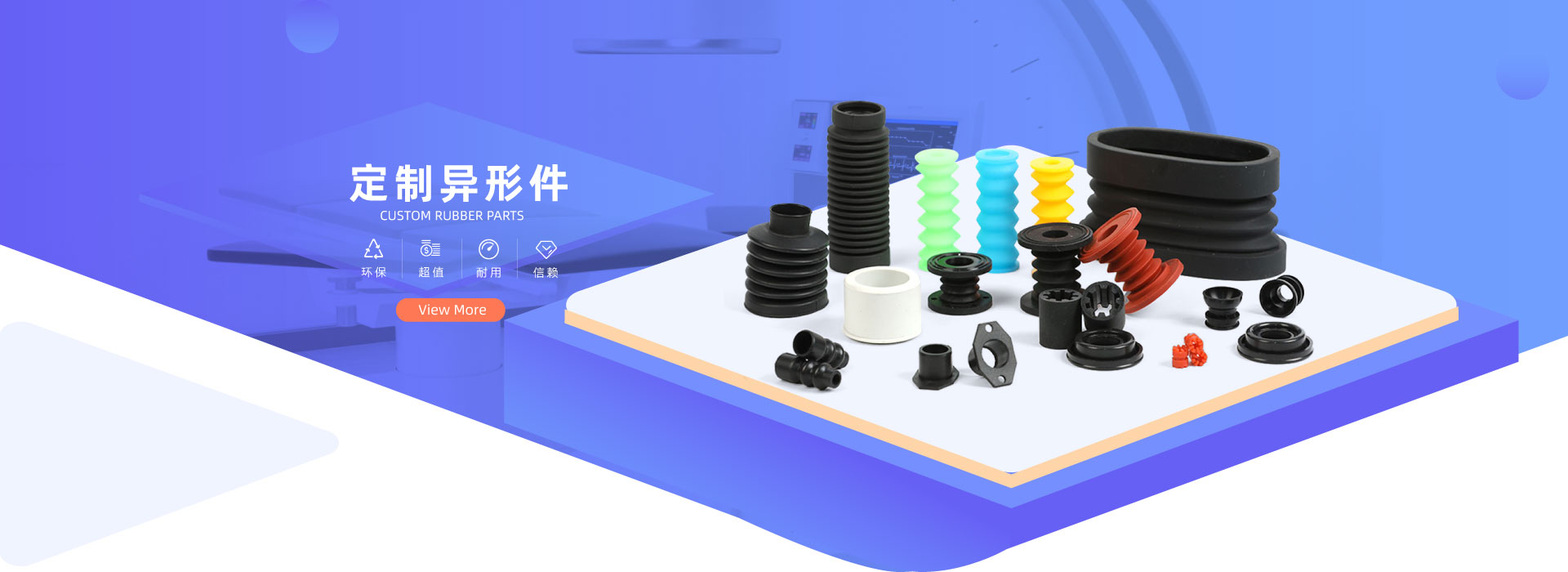 生產(chǎn)各種材質(zhì)、各種用途的橡膠產(chǎn)品各種形狀的密封膠條,膠堵、膠墊、按鍵、皮碗、襯套等產(chǎn)品。